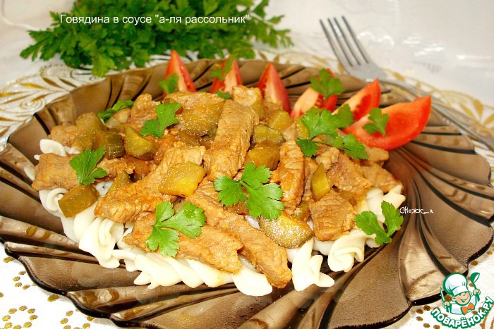 Рецепт «Говядина в соусе "А-ля рассольник"»: