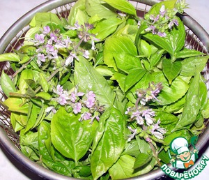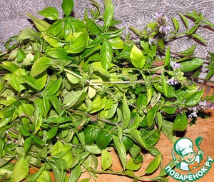 Песто мы едим часто. Базилик растёт в ящике на окне. От яркого солнца растения стали немного желтого оттенка. Пришлось часть базилика срезать для песто. Готовим его на свой вкус...
