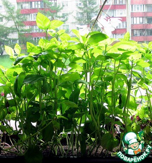 А это наш базилик. Правда, он сейчас значительно вырос. Иногда в песто добавляем и сельдерей со своего огорода. Этим рецептом никого не удивишь, но всё же...
