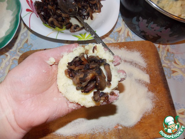 Рецепт «Картофельные котлеты с грибами и морковным пюре»: