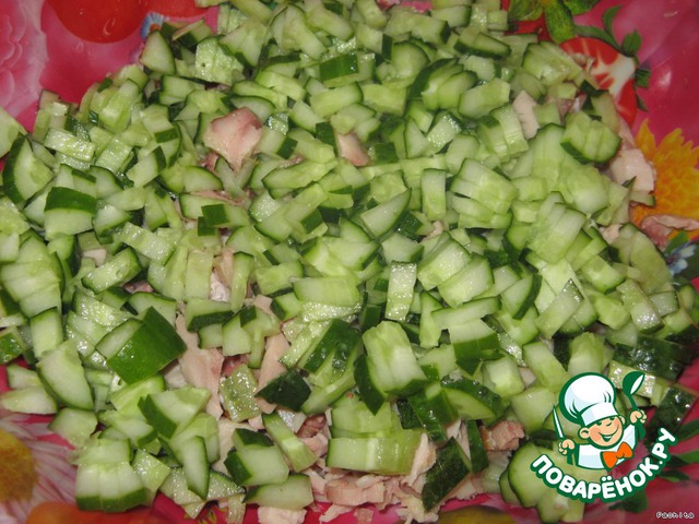 Огурец нарезать кубиками.