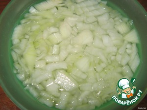 Лук очистить, нарезать кубиками и замариновать.