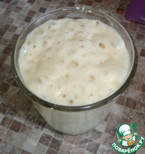 Поставим в тёплое место опару из щепотки сахара, трёх ст. л. тёплой воды, 10гр. дрожжей и 2 ч. л. муки.