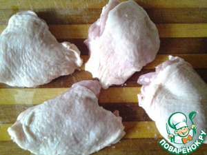 • На другой сковороде разогреть масло, выложить бёдрышки и обжарить по 10 мин. с каждой стороны без крышки, до готовности.