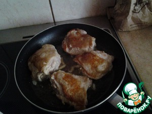 На другой сковороде разогреть масло, выложить бёдрышки и обжарить по 10 мин. с каждой стороны без крышки, до готовности.