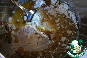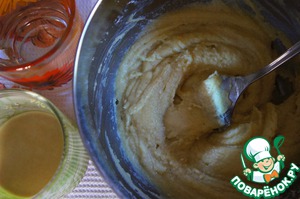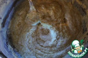 Растворите дрожжи и сахар в четверти стакана теплой воды. Как только дрожжевая смесь покроется шапочкой - добавьте ее в полностью остывшее тесто.