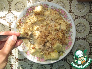 Полить этой смесью хлеб. Дать пропитаться 10 минут.