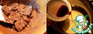 В растопленный шоколад влить сливки, тщательно перемешивая. Снять шоколадную массу с паровой бани.