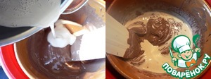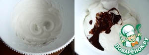 Вылить шоколадную массу в белки, аккуратно перемешать, что бы белки не теряли объёма. -