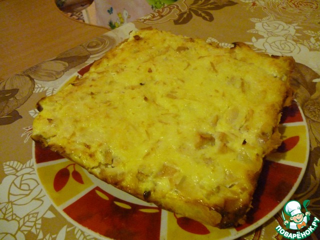 • Залить яичной смесью и поставить в заранее разогретую духовку т=200* на 30-40 минут. Получается очень нежный пирог. Приятного аппетита!