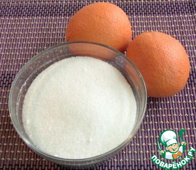 - Сахар (350 г для апельсинов, 175 г в тесто, 100 г в крем) — 625 г