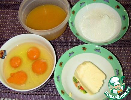 Готовим крем: цедру 2 апельсинов натираем на мелкой терке, выжать сок. Яйца взбить с апельсиновым соком, добавить сахар, масло и цедру. Поставить миску на паровую баню. Помешивайте на медленном огне, пока смесь не загустеет.