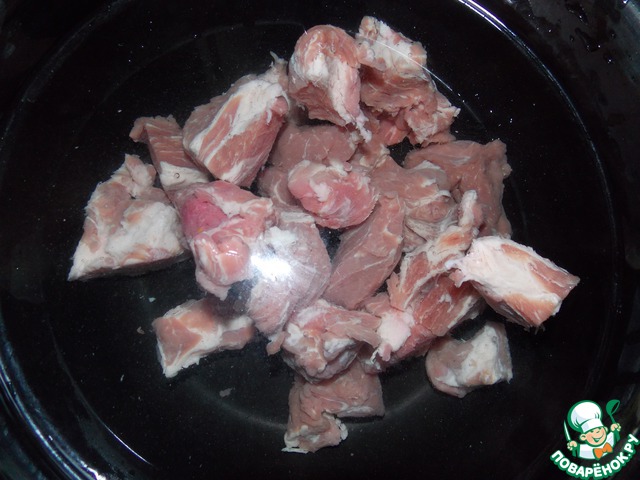 Выкладываем мясо в кастрюлю и заливаем водой... И ставим вариться.. Мясо я варю обычно 1-1.5 часа..