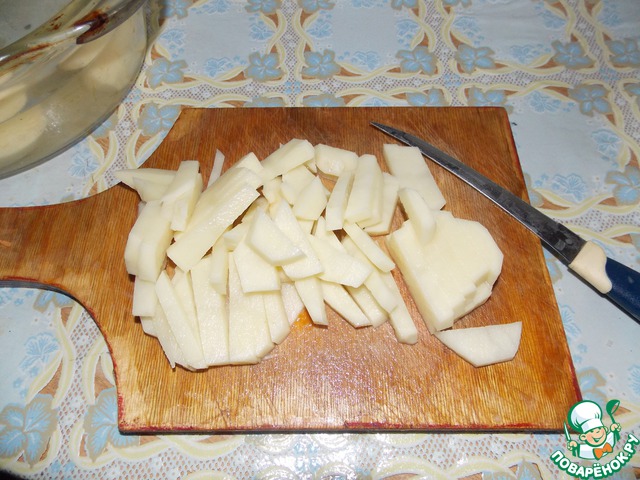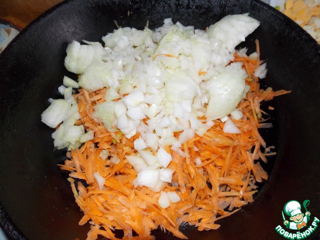 Пока варится мясо делаем заготовки для супа... Трем морковку и режем лук...