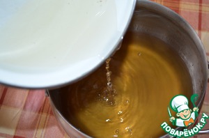 Приготовить сироп из сахара и воды (думаю, можно не кипятить, а просто разогреть, чтобы сахар растворился) -