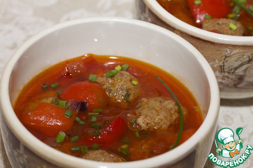 Практически в каждом испанском баре или ресторане, где подают мелкие закуски тапас, в меню есть фрикадельки. Тапас - не только собирательное название для всех закусок. Тапас - это испаский образ жизни. Главное в тапас - не состав, а количество. Оно обязательно должно быть небольшим. Фрикадельки, приготовленные по рецепту Нины Фоминой, получились очень богатыми на вкус и аромат. Подавать их следует в мисочке вместе с соусом. Брать можно зубочистками или вилкой, подцепляя фрикадельку и кусочек сладкого перца. Соус исключительно вкусен с хорошим хлебом.
