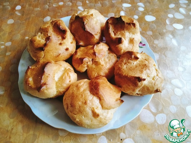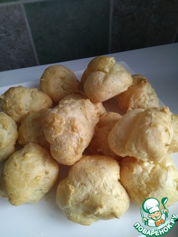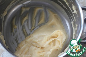 Для готовки я использовала одну кружку, ею сначала отмеряла муку (потом ссыпала её в тарелку), потом в эту же кружку налила воду (у меня вместилось 300 мл) и вылила её в кастрюлю, в которой буду заваривать тесто (поставила кастрюлю на огонь), растопила в микроволновой печи маргарин, слила его в ту самую кружку и долила 1/2 подсолнечным маслом. В воду влила все это масло, когда закипела вода, огонь сделала на минимум и всыпала муку, помешивая, и делала это до тех пор, пока масса (заварное тесто) не станет отставать от стенок кастрюли (не превратится в однородный ком).