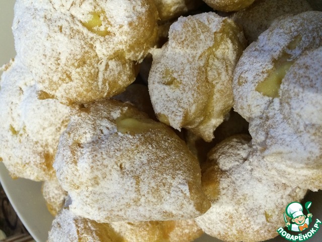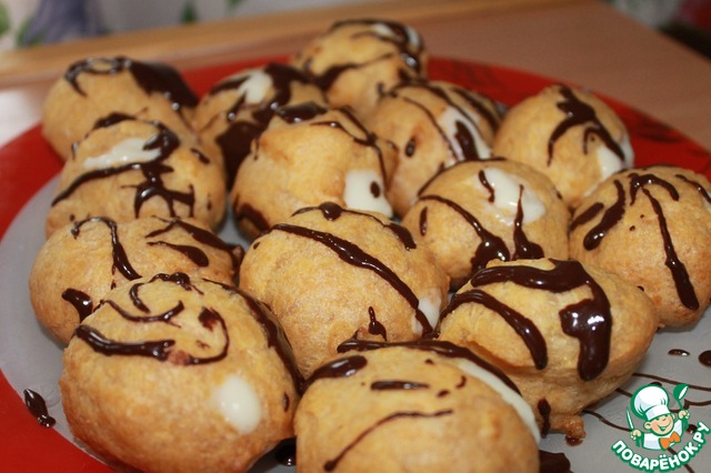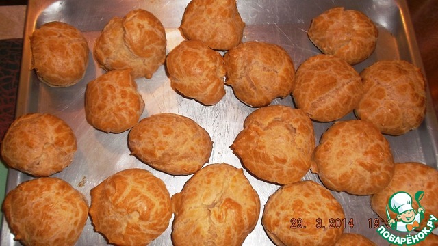 Дать остыть и начинять кремом, какой вам больше нравится, я заварной использовала (http://www.povareno k.ru/recipes/show/77 631/)