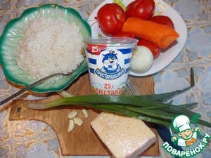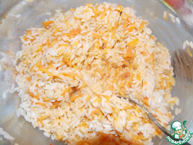 Затем смешиваем рис с овощами.. Это и будет начинка для наших помидорок (рис можно отварить заранее или, как часто бывает, рис остается от гарнира и, чтобы не переводить продукты, сделать из него вот такие помидорки..)