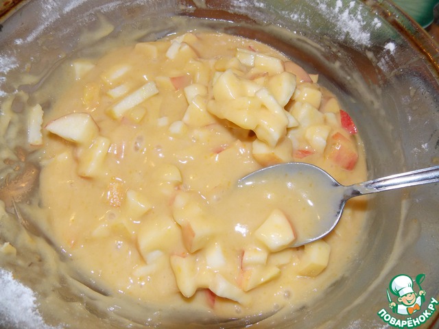 Нарезаем кубиками яблоки и добавляем в тесто.