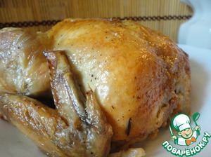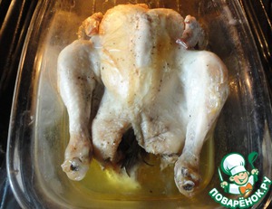 Нагреваем духовку до 200 градусов и возвращаем в нее курочку для появления румяной и хрустящей корочки еще на 30 минут. -
