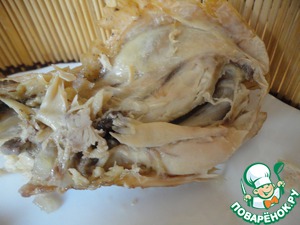 А в это время дошла наша курочка. Теперь самое сложное. Нужно очень аккратно поднять курочку. Она очень нежная и может легко развалиться. Поэтому ее надо сначала очень аккуратно отделить от стенок формы. Признаюсь честно, одно крыло и "попка" у меня все-таки отвалились. На итоговых фото пришлось их "присобачивать" к тушке.