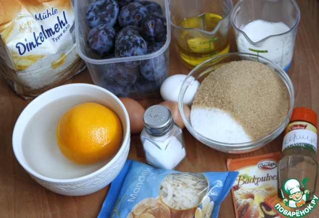 Ингредиенты для «Сливовый кекс из полбовой муки на оливковом масле»:
