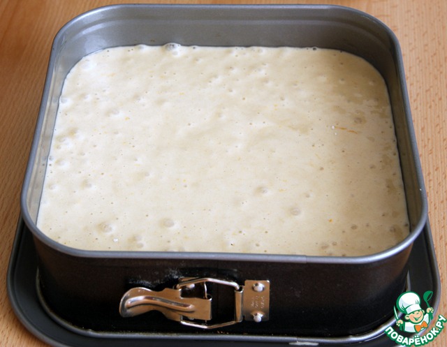 Форму (у меня 24х24) хорошо смазать растительным маслом и/или... лучше выстелить бумагой для выпечки. Вылить тесто.