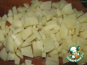 Из готового бульона вынуть мясо. В бульон положить картофель. Варить на небольшом огне 10-15 минут.