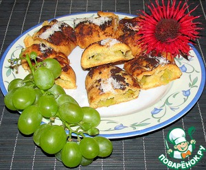 Начинка - кислый виноград. Хорошее сочетание - тесто сладкое и кислая начинка. Можно подсыпать к винограду сахар, но без него мне больше нравится.