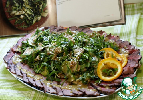 Я уже писала в одном из своих рецептов, что в руки случайно попала изданная в Чехии книга рецептов итальянской кухни "Два итальянских гурмана". Оказалось, в Англии сейчас идет кулинарный сериал с участием авторов этой книги - "Два итальянских обжоры") Решила выложить еще один испробованный рецепт. Может показаться, что салат кисловат, но все зависит от качества бальзамического уксуса.