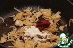 Добавить в сковороду муку и томатную пасту, перемешать...