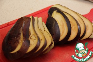 Баклажаны режутся не тонко, а около 1 см в толщину - на фото видно. Если сделаете совсем толстыми, не вкусно получится, все-таки баклажаны должны хорошо прожариться.