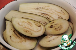 Включить духовку на 200 градусов и заняться выкладыванием продуктов в форму для запекания. Сначала выложить баклажаны.