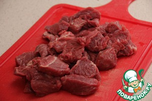 Нарезать мясо (у меня говядина) небольшими кусочками.