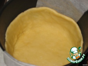 Из ингредиентов для теста замесить не крутое, эластичное тесто. Накрыть пленкой и убрать в холодильник на 30 минут.
