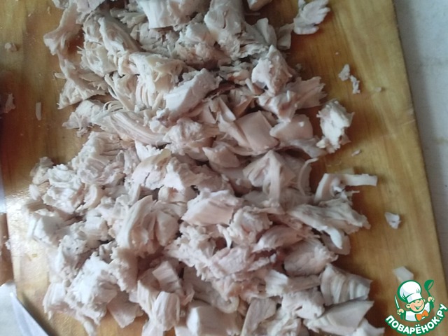 Нарезаем ее кубиками. Можно разделить на волокна. Вкус от этого не меняется, а только вид.