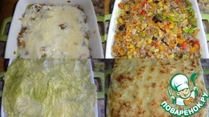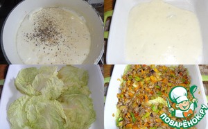 Последний слой должен быть листья капусты, политые остатками соуса "бешамель", которые нужно щедро засыпать сыром. -