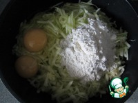 Перемешиваем, солим, должно получиться тесто, примерно как на оладьи, возможно, муки понадобится больше, все зависит от того, какой сочности кабачок.