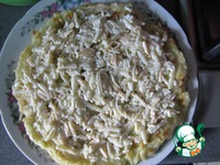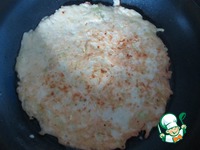 «Блин» с обжаркой накрываем следующим «блином», его смазываем частью сырной смеси.