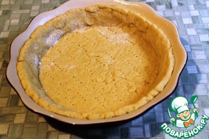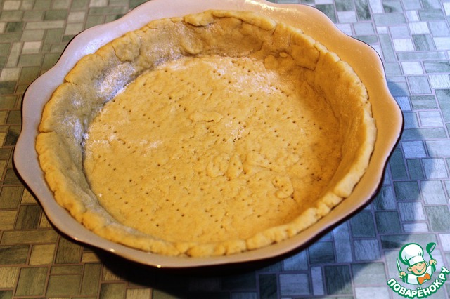 Помещаю тесто в форму, предварительно смазанную маслом, формирую бортики и накалываю вилкой.