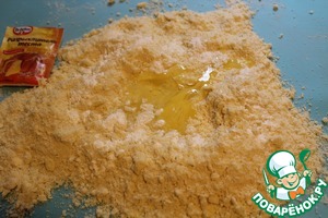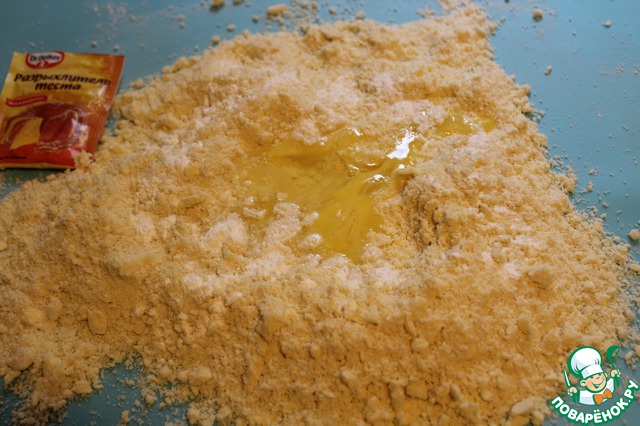 Добавляю разрыхлитель и куриное яйцо, замешиваю тесто.