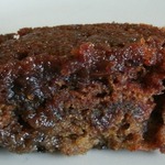 Затем переворачиваем его. Разрезаем на 9 частей. И перед подачей поливать каждый кусочек теплым (оставшимся) соусом.