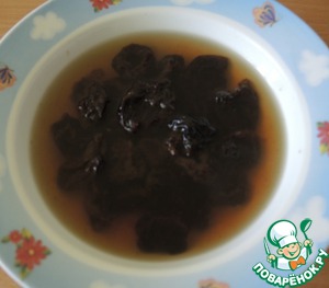 Чернослив промываем. Заливаем кипятком для размягчения минут на 10.