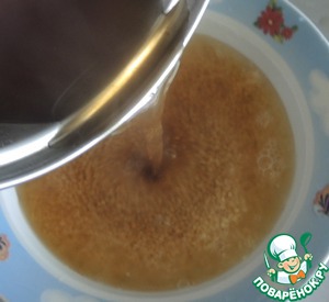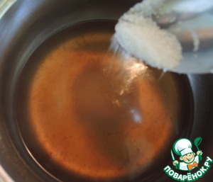 Отвар переливаем в другую посуду, добавляем сахар и доводим до кипения.