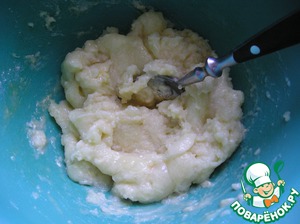 Смешать с мукой (1/4 чашки), солью (2/3 ч. л.) и яйцом. Вымесить тесто.