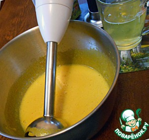 Влить в желтки горячие сливки очень тонкой струйкой, одновременно интенсивно сбивая смесь (я использовала блендер). -