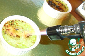 Если крем-брюле начнёт зарумяниваться раньше времени - перенести формочки на нижнюю полку.