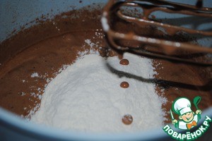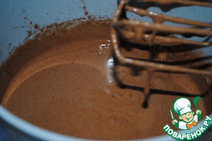 Взбиваем яйца с сахаром 3-5 мин. Добавляем какао - хорошо перемешиваем.