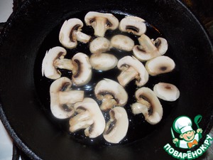 Начнем с грибов: нарезаем и обжариваем их до золотистого цвета.